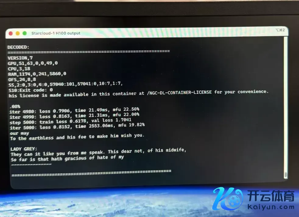 Starcloud还使用莎士比亚全集试验了由OpenAI首创成员Andrej Karpathy打造的LLM NanoGPT,使该模子或者以莎士比亚式的英语进行抒发。
