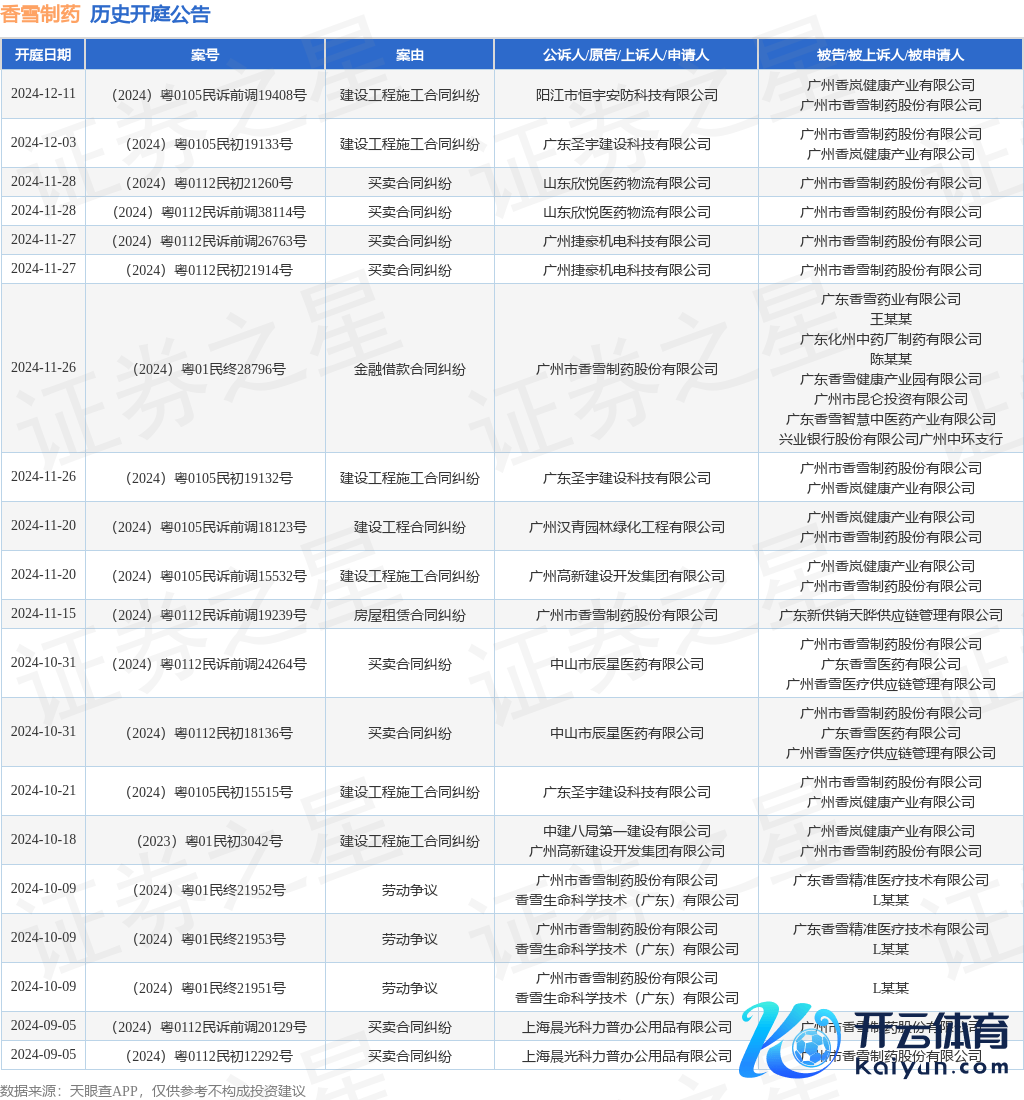 本站音问,把柄天眼查APP闪现,近日公布了一则广州市香雪制药股份有限公司行为被告/被上诉东说念主的开庭公告,闪耀本色如下: