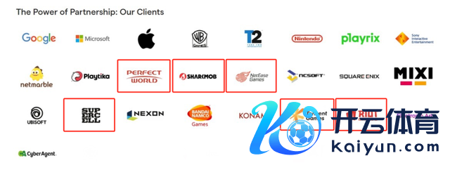 国内的客户中,应该有不少是寻求了熠文的国际子公司的衔接。咱们能从之前的客户展示图中看到眉目,在这些被称为「顶级游戏企业」的客户中,腾讯、网易、完好寰宇明显上榜,此外还有三家公司拳头游戏、Supercell、Sharkmob均已被腾讯收购,也算是在股权上属于中国公司。
