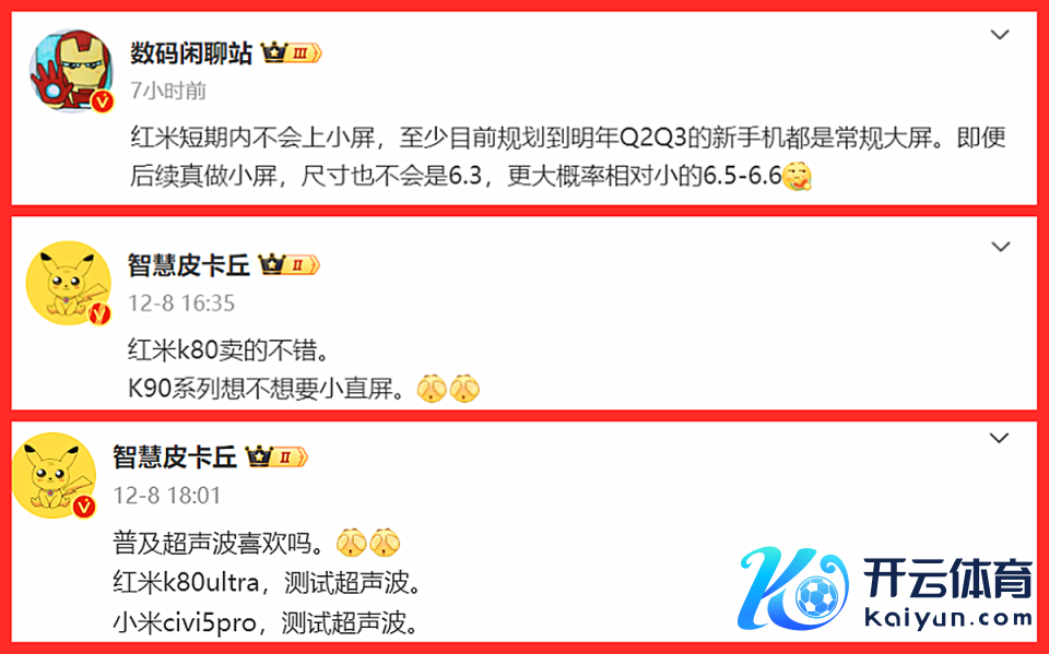 其次,红米K系列中的小屏机型也迟缓传出了音书,博主称红米手机短期内不会上小屏,至少刻下野心到来岁第二季度第三季度的生手机齐是成例大屏。