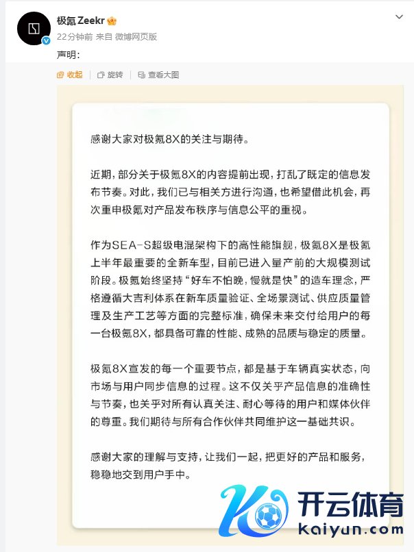 极氪:部分极氪8X实质提前出现,打乱既定信息发布节律极氪:部分极氪8X实质提前出现,打乱既定信息发布节律