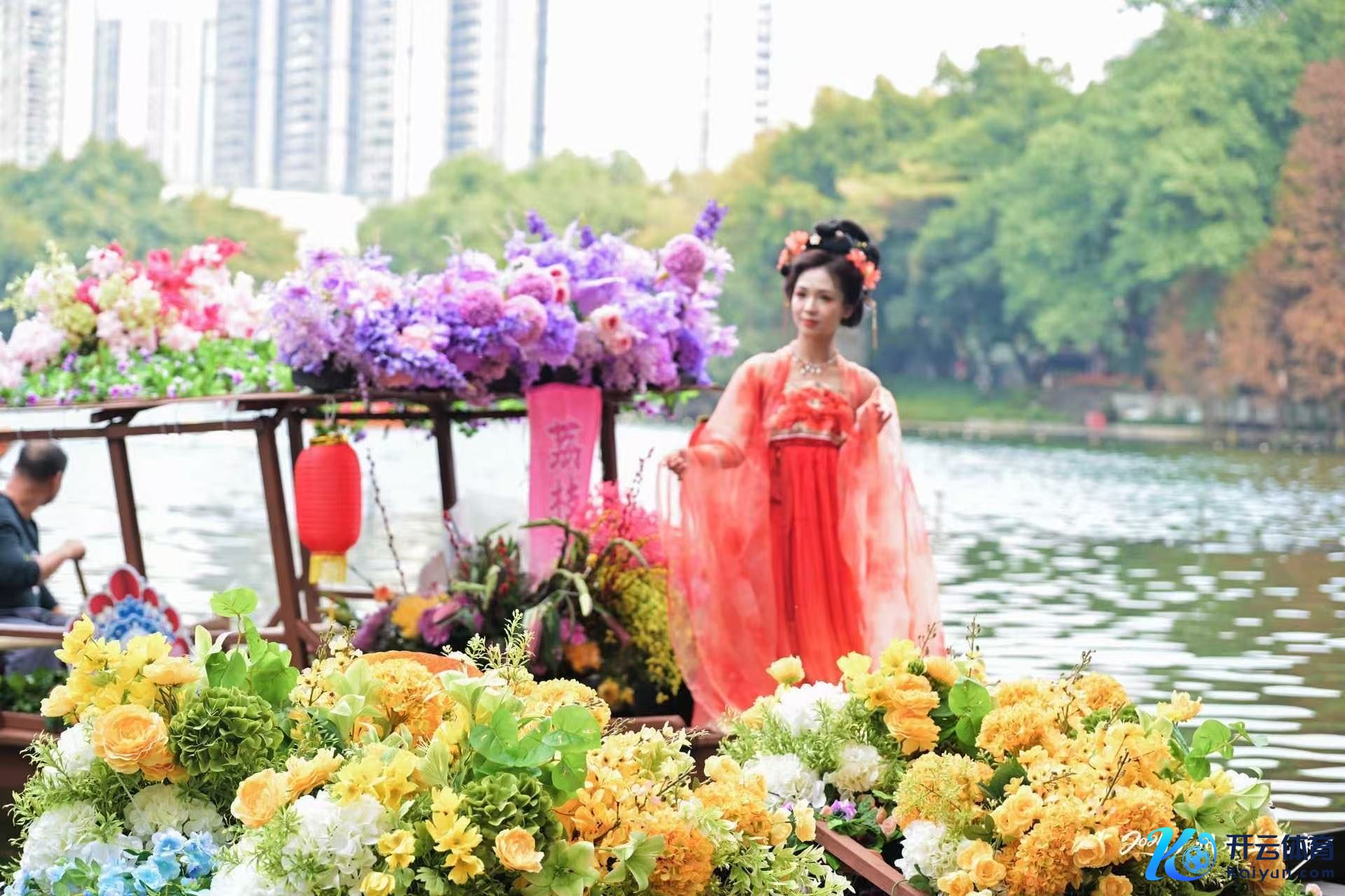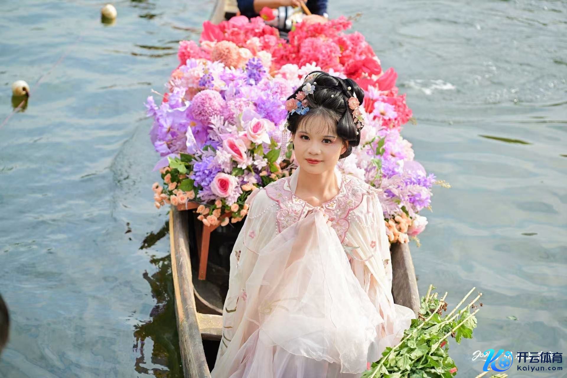 跟着开幕式圆满遣散,水上花墟认真开埠。一艘艘悉心打造的秉性花船,犹如一颗颗水上明珠。多位身穿汉服的俊男好意思女乘坐花船在湖面巡游,进行着水上花市交游,各样选藏花草、传统年花林林总总,重现畴前水上花埭盛景。