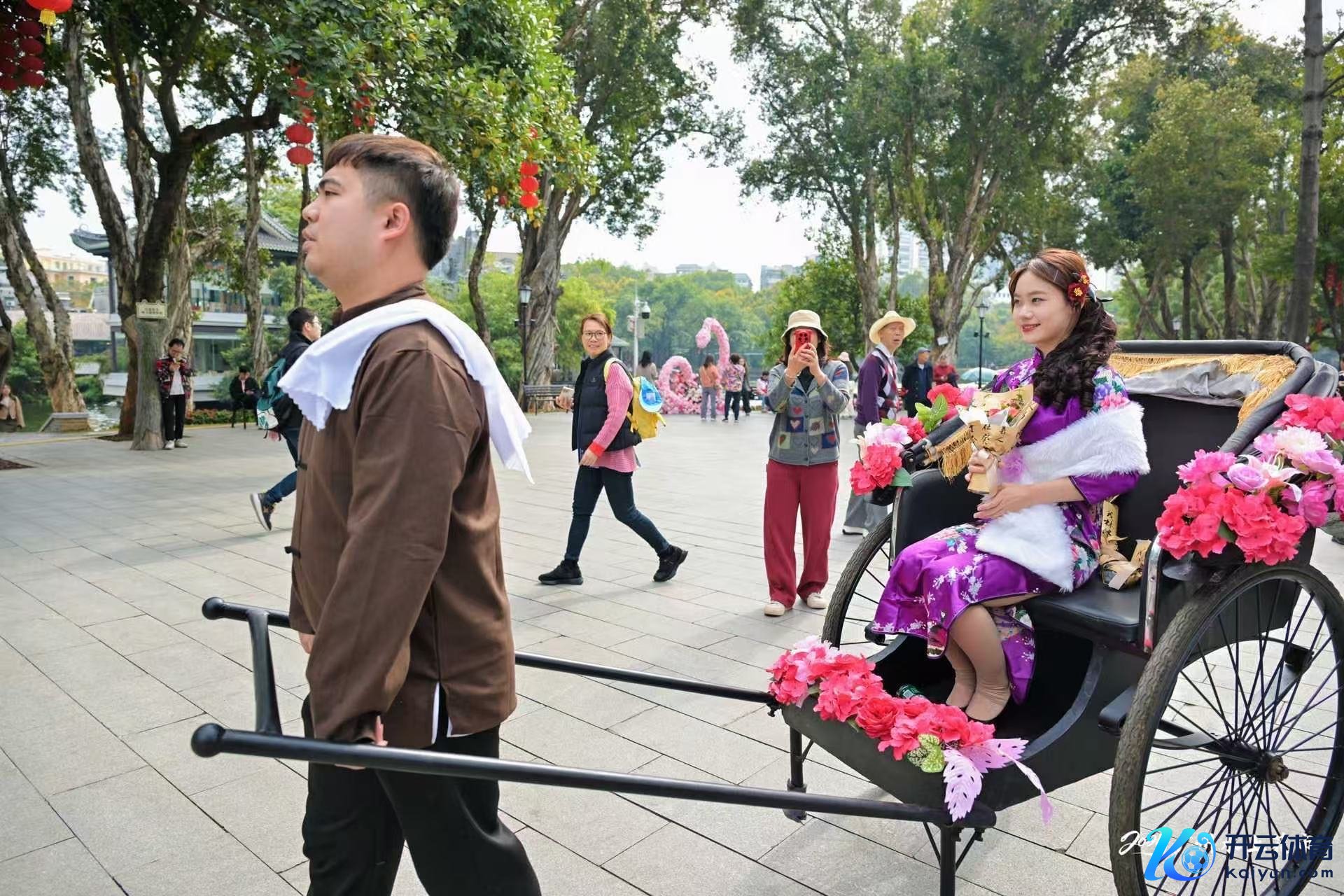 还有西关密斯乘坐人力车仿佛从民国穿越而来,不经意间闯入这个百年后的盛世,踯躅湖畔,留住期间与文化发酵后的好意思妙思绪;粤剧巡游技艺,一曲一调,尽显粤韵风华,生旦末丑走下舞台,放下身体,与不雅众们近距离互动,感受粤剧另一面的魔力,成为点缀荔湖花海一颗最亮丽的明珠。