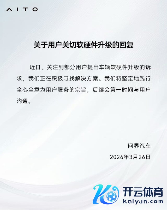 对此,问界用户就业公众号发布了《对于用户柔软软硬件升级的回复》,称正在积极寻找处置有缱绻。