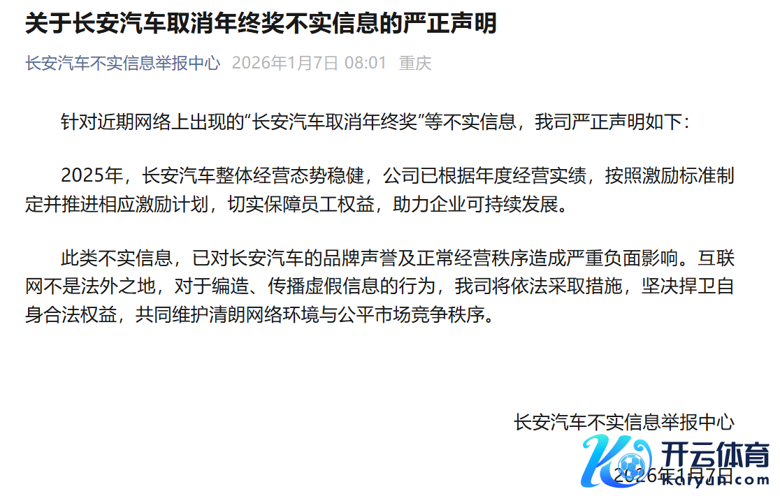 长安汽车:网传“取消年终奖”信息虚伪 已鼓舞激发计较保险职工权益长安汽车:网传“取消年终奖”信息虚伪 已鼓舞激发计较保险职工权益