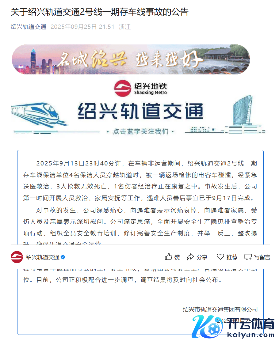 绍兴通报地铁更阑撞东说念主事件:3东说念主抢救无效弃世绍兴通报地铁更阑撞东说念主事件:3东说念主抢救无效弃世