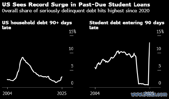 由于拖欠的学生贷款数额创下历史新高,第二季度好意思国破钞者贷款中过时严重贷款的占比创下2020年头以来最高水平。