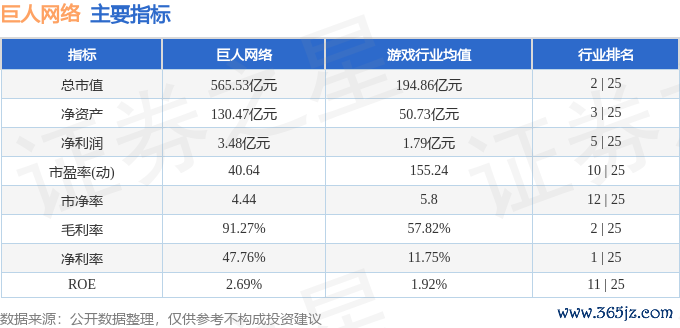 巨东谈主网罗2025年一季报清醒,公司主营收入7.24亿元,同比上升3.94%;归母净利润3.48亿元,同比下降1.29%;扣非净利润3.62亿元,同比下降10.45%;欠债率12.97%,投资收益1.56亿元,财务用度335.56万元,毛利率91.27%。巨东谈主网罗(002558)主交易务:互联网游戏的研发和运营。